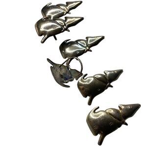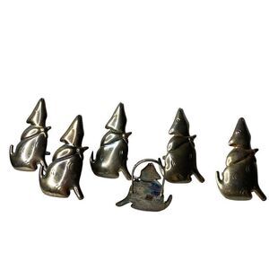 Set of 6 Howling Coyote Silver Plated Metal Napkin Rings Holders Southwestern.