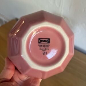 Add a charming touch to your kitchen with this set of 6 IKEA Pink STRIMMIG cereal bowls. Featuring a soft, glossy pink glaze and a faceted design, these bowls are perfect for cereal, snacks, or soups. With their discontinued pattern, these bowls bring a unique vintage-inspired, cottagecore aesthetic to your table setting. Made of durable ceramic, they are designed for everyday use while adding a pop of color to your collection.