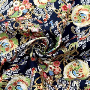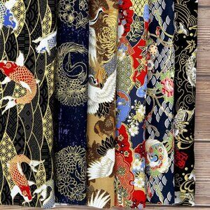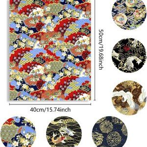 Features: Beautifully detailed fabric showcasing classic kimono patterns like cranes, koi, chrysanthemums, and cherry blossoms. Each square has vibrant colors and intricate bronzing details for a luxurious, cultural vibe. Perfect size for cutting and customizing your projects.
