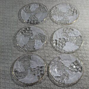 Set of 6 KIG Indonesia Vintage Clear Glass Gold Rimmed Round 7.25" Salad Plates