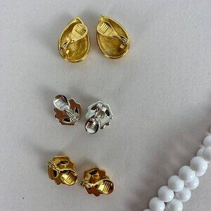 Set of 6 MONET Jewelry 4 Earrings, 1 Necklace In Gold & White Beads, 1 Brooch