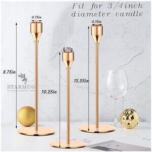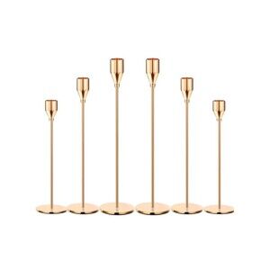 Rose Gold Candle Holders Set of 6, Metal Taper Candle Holders, Tall Gold Candlestick Holders, Fits 3/4 inch Thick Candle&Led Candles, for Table Centerpiece, Mantels, Weddings, Dining, Party