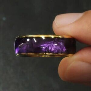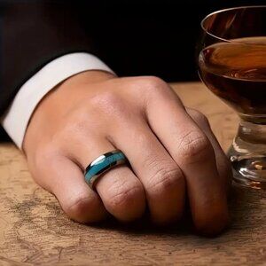Ring Size 9. Unisex. Set of 6 Modern Wood & Stone Inlaid Titanium Steel Ring - Simple Style, Single-layer Coating. Titanium Band Ring for Men Carbon Fiber Inlay Comfort Fit Ring Jewelry Gift for Birthday Valentine's Day Father's Day