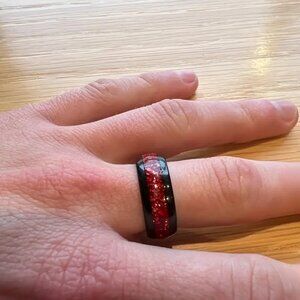 Set of 6 Modern Wood & Stone Inlaid Titanium Steel Ring - Simple Style, Size 9.