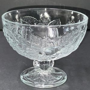 Simply gorgeous set of 6 Pasabahce Turkish Art Clear Glass dessert / ice cream bowls. These are heavy bowls designed with grapes, apples, oranges and leaves. They measure 4 1/2 inches x 3 3/4 inches.