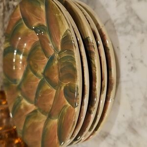 Beautiful handcrafted ceramic plates featuring an artichoke design. The plates showcases a blend of earthy tones and each is hand painted and unique.