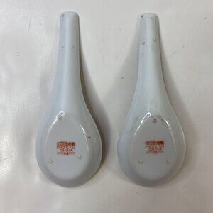 Set of 6 Porcelain Chinese Mun Shou Ceramic Soups Spoon Rice Eyes