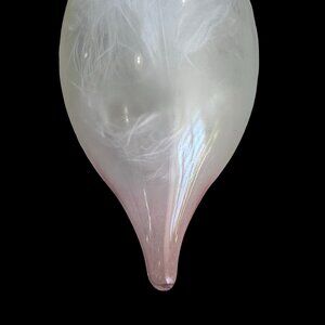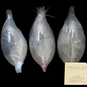 Set of 6 Rachel Zoe Glass Ornaments with Feathers and Pink Ombre' measure 6" in height and about 2-1/2" in diameter at the widest point. New in original box.