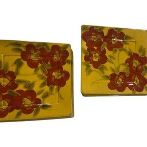 These exquisite hand-painted ceramic plates invite you on a journey to a vibrant garden. Each brushstroke illustrates a delicate floral symphony, harmoniously dancing across the square canvas. As an artistic creation of the Rousncing Provens Collection, this plate celebrates the marriage of USA and French craftsmanship, promising to transform your dining experience into an artful delight. Will match 2025 popular decor colors Circa 1960s-1970s