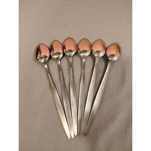 Set of 6 Stainless Steel Soda Iced Tea Spoons Japan Floral 7.5 inches