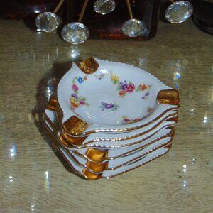 Set of 6 VTG Schumann Bavaria Germany Empress Dresden Flowers Ashtrays. 3.5"