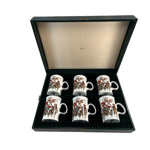 Set of 6 Vintage 1980s Gucci Coffee Cup Mugs England Bone China Solid Wood Box