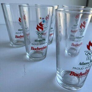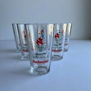 Set of 6 Vintage 1996 Olympics Glasses, Budweiser Logo, Retro Sports