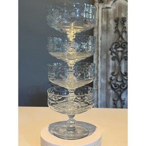 ๐ท 5 Vintage etched crystal coupe glasses (ideal for parfait, sherbet, champagne tower, cocktails)