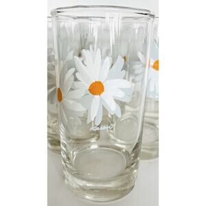 Set of 6 Vintage Daisy Glasses Tumblers White & Yellow Daisies Signed Karen 5.5"