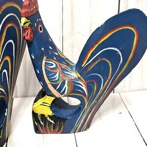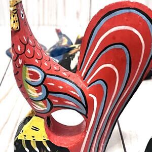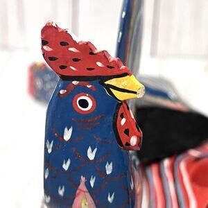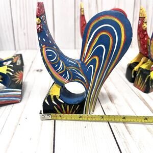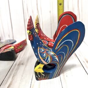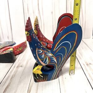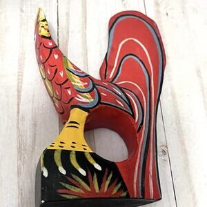 Set of 6 Vintage Hand Painted Rustic Folk Art Rooster Napkin Ring Holders