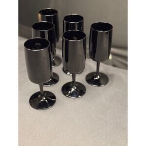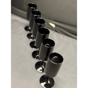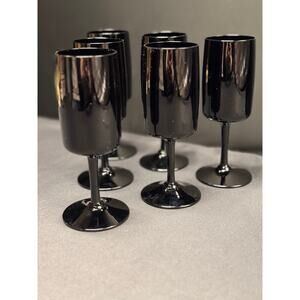 Set of 6 Vintage Hand-Blown Black Wine/Cocktail Glasses โ 6" Tall