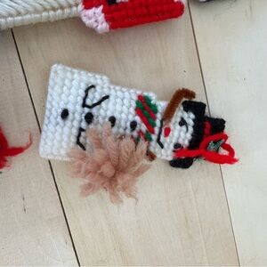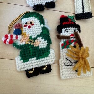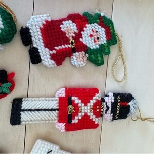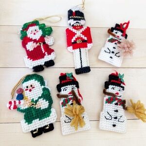 Set of 6 Vintage Plastic Canvas Needlepoint Christmas Ornaments