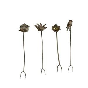 Set of 6 Vintage Sterling Silver Cocktail Martini Pick Forks Set Assorted 3.5"
