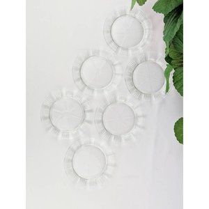 Pristine set of six (6) vintage glass coasters with a flared plate shape and a sunray pattern. Each small dish measures approximately 4.25" across and the edges sit .5" high. Nostalgic vintage collectible glass. These small coasters are part of Fostoria Glass Company's Sunray Clear pattern produced during the late 1930s and are in excellent vintage condition. There are no chips or cracks and no scratches. They look as if they were just bought from the storefront today. Alternative use for individual party ashtrays. Perfect for game night! Great housewarming gift. Thoughtful host gift. Gift worthy.
