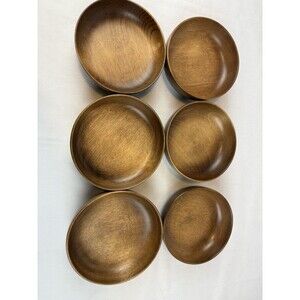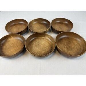 Set of 6 Vtg Woodbury Woodware Hand Turned 6" Salad Bowls - Shelburne VT