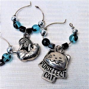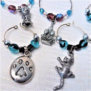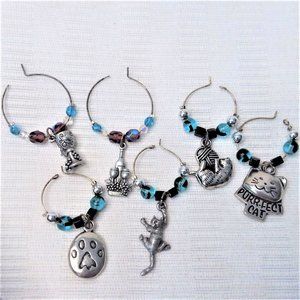 Set of 6 Wine Glass Charms Drink Kitty Cat Beaded Handmade Bar Girl Party Fun