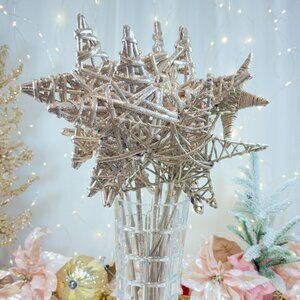 Set of 6 Wood Glitter Star Tree Vase Filler Christmas Holiday Decor