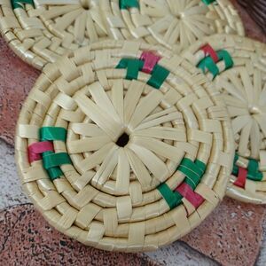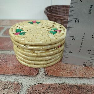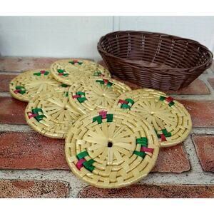 Set of 6 Woven Drink Coasters - Wicker Rattan / Bohemian (+ Basket)