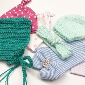 Set of 6 baby girl hats / beanies / bonnet + headband Fits size 0-6 months *some are without size tags Brand new, never been worn