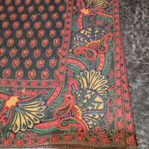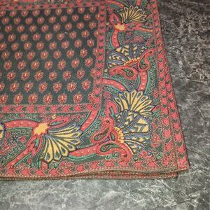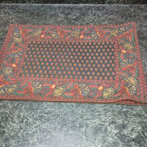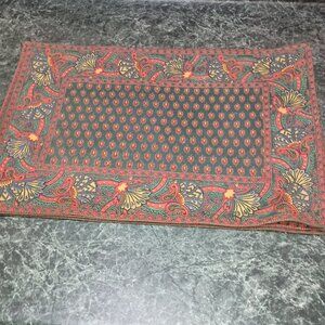 18 1/2" x 12 1/2", heavy fabric, red and green with gold accents. No stains