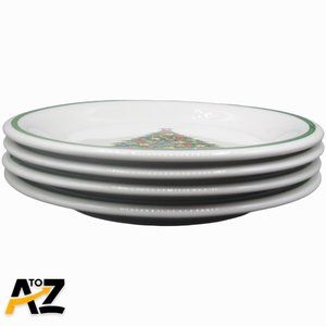 Set of 7 ~ 6⅝" STONEWARE SMALL Bowls ~ Christmas Tree ~ Off White / Green Bands