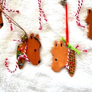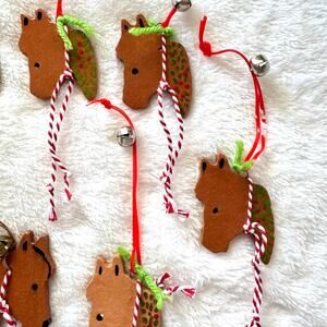 Set of 7 Hand Painted Ceramic Bridled Horse Holiday Christmas Tree Ornaments