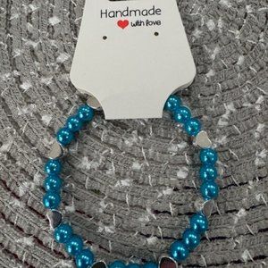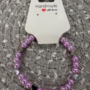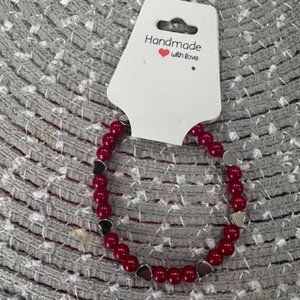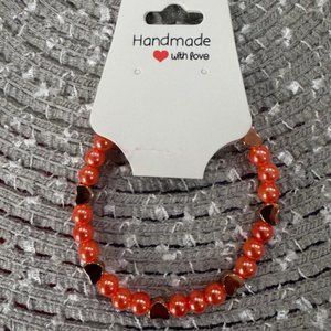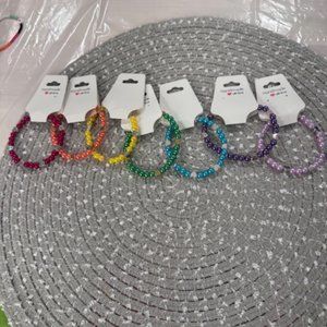 Set of 7 plastic beaded bracelets with the colors of the rainbow, and heart charms.