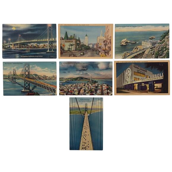 Set of 7 Postcards 1940's San Francisco, California Vintage Bridges UNUSED
