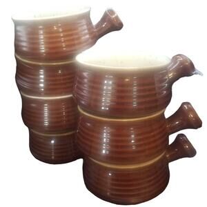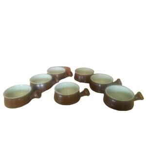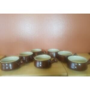 Set of 7 Vintage 1970’s Fashion House Stoneware Handled Soup Mug Crocks Brown