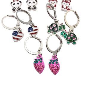 set of 7 Huggie hoop Lever back Female girls Silver tone cute charm earrings, New. SKU: L0150