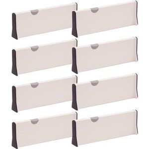 🧿Set of 8. White. Size: 4 inches tall and adjustable from 11 to 17 inches. Expandable retractable design fits most drawers and cabinets front to back or side to side. Organize bedroom dresser drawers and nightstands in children, tween, teen and adult bedrooms and closets. Perfect for organizing junk drawers, kitchen utensils tool, office desk supplies, craft and art supplies, bathroom clutter and more. Use in home, apartment, condo, dorms, cabins, RVs and campers.