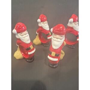 Set of 8 Ceramic Santa Claus Napkin Ring Holders ADORABLE!