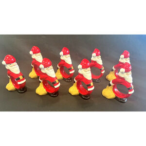 Description: Set of 8 Ceramic Santa Claus Napkin Ring Holders