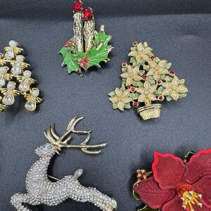 Set of 8 Crystal Faux Pearl Metal Christmas Holiday Brooch Pins Anne Klein, Cole