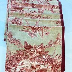 Set of 8 Elegant French Country Toile Linen Napkins –