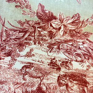 Each napkin measures 17" x 17.5" and features a beautiful vintage-inspired floral and nature motif in deep red on neutral beige linen. Finished with a rich burgundy border for a refined touch. Perfect for dinner parties, rustic weddings, or everyday elegance.