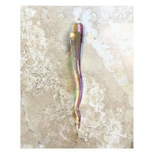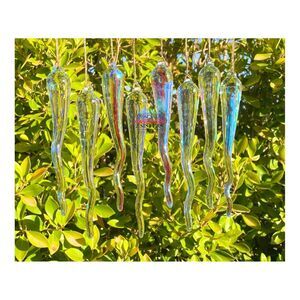 Exquisite, Chihuly inspired, 6" iridized clear, solid glass icicle ornaments in a set of 8. Graceful swirls with a shimmering, iridescence that catches the light in a rainbow of colors. These beauties are chameleons! The photos are taken in different lighting to show the change of colors. Sometimes clear, other pink, blue or a greenish hue. And just like icicles, no two are exactly the same. (much like friends).