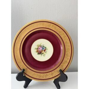 Set of 8 Heinrich Selb Bavaria Germany Plates Floral Embossed Gold Burgundy