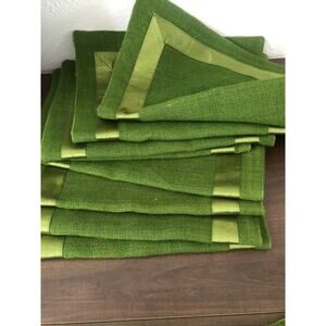 Set of 8 Holiday Table Placemats And Runner Burlap Look Satin Ribbon Christmas
