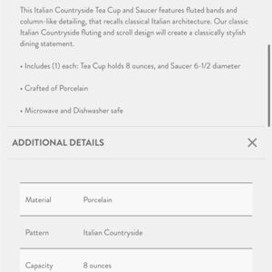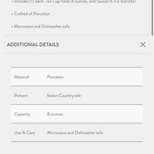 Never used. New without box. Just sits in my cabinet. Set of 8 tea cup and saucer plate.