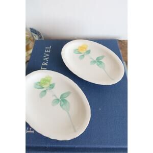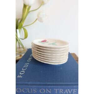 Set of 8 Koransha Vintage Arita Yaki Ware Porcelain Rose Scalloped Oval Plates