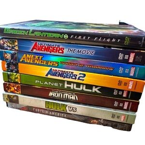 A set of 8 pre-owned Marvel DVD’s featuring 7 animated cartoon movies and Marvel’s Captain America, the First Avenger. A great collection for the starter Marvel fan in your life.