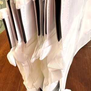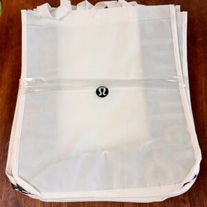 A set of 8 new Lululemon reusable tote bags, white with black. Approx. 17" x 14" x 6.5"