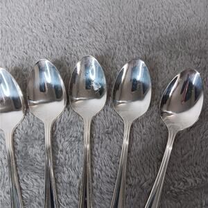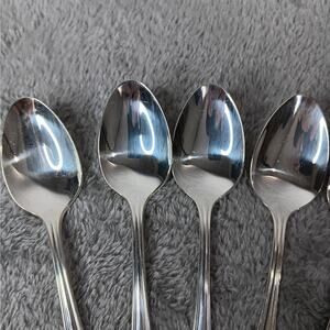 Set of 8 Oneida Silversmiths Silver Plate Clairhill-Fairhill Teaspoons. Vintage from the 1970's, Each is approximately 6" long. Preowned with some light scratches. From a non-smoking home.